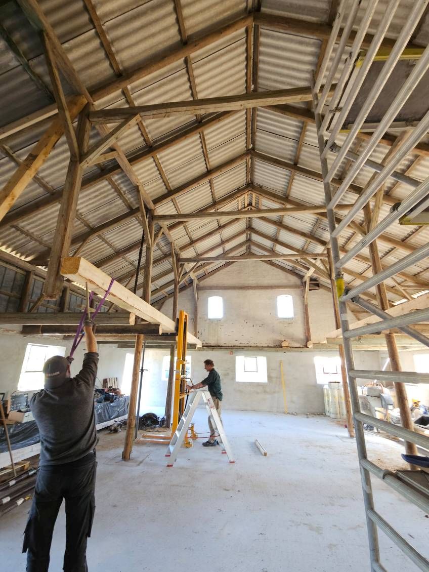 tømmerkonstruktionen renoveret, fordi flere af de gamle bjælker var rådnet igennem.